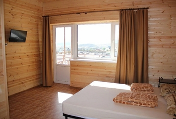 Жили с 20 по 23 августа. Номер понравился. Балкон с видом на море и горы. Море и мыс Меганом близко, в шаговой доступности, как и Таврида Арт. Парковочные места на территории.